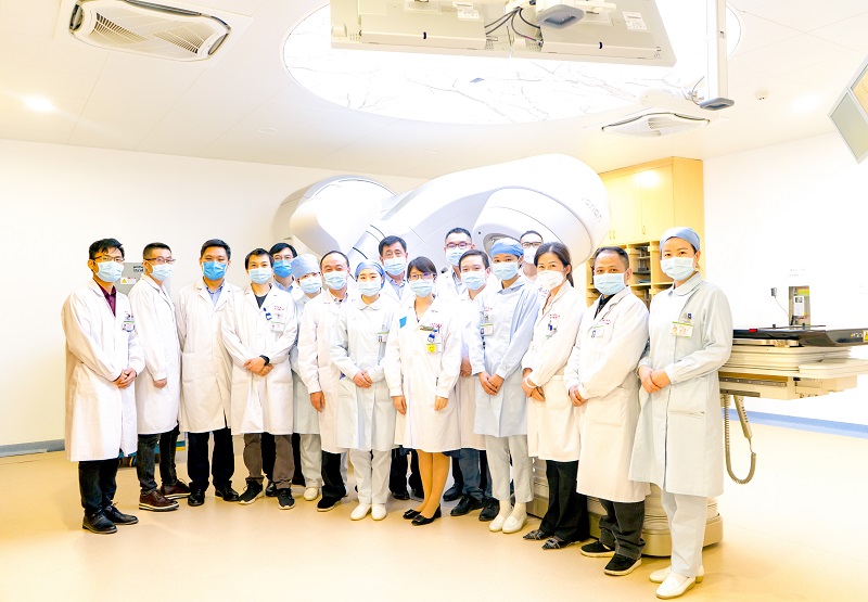 “这些适用放疗治疗的肿瘤数量占所有恶性肿瘤的一半。”王洋教授表示,肿瘤细胞对辐射杀伤的敏感性远远高于人体的正常组织细胞,放射治疗的高能射线在通过医生和物理师高度精确的计算和设备使用中穿过正常细胞集中切断肿瘤的DNA链,阻断肿瘤细胞繁殖生长,达到灭杀根治目的,同时也保障正常组织获得安全的照射剂量。